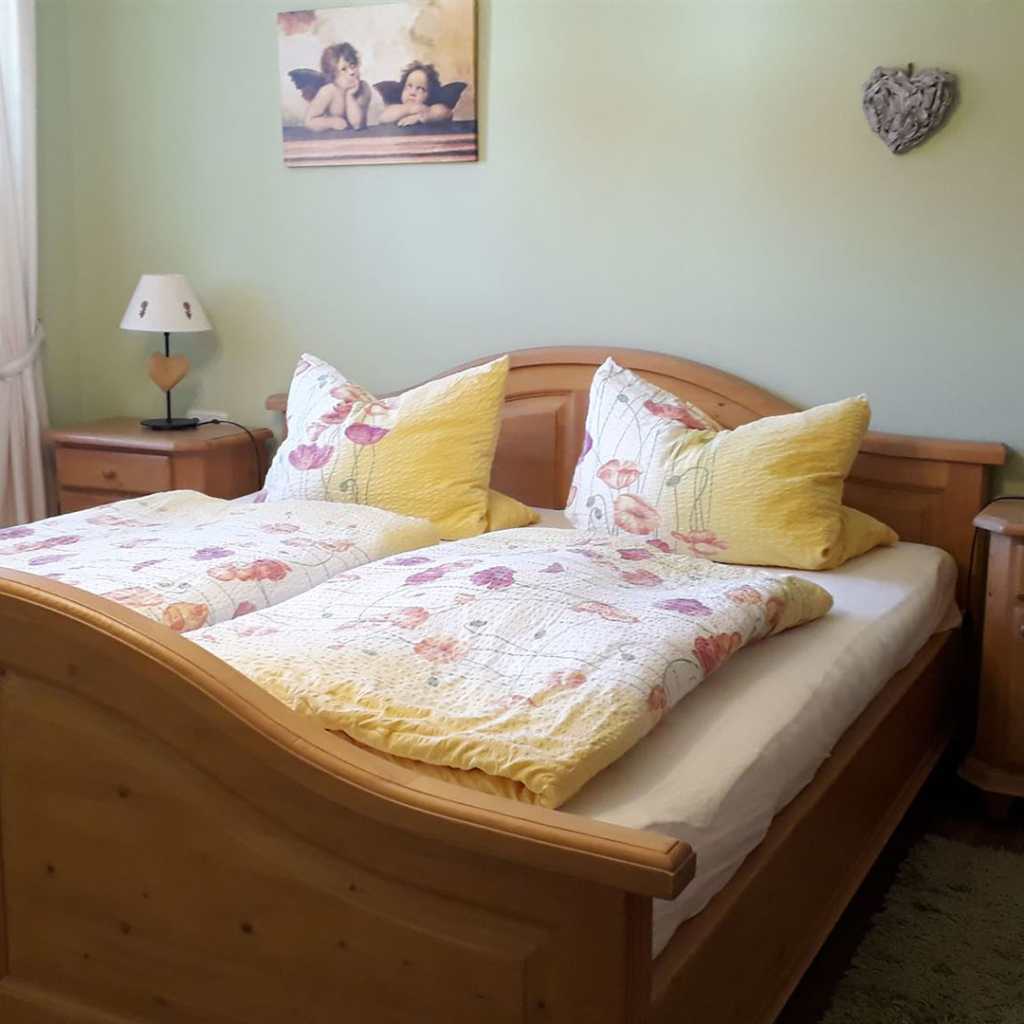 Landhaus-Doppelbett 1,80 x 2 m mit Taschenfederkern-Matratzen (Lattenroste an Kopf- und Fußteil verstellbar)