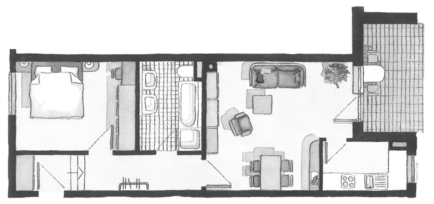 Die Urlaubsgarderobe kann bei Bedarf mit dem vorhandenen Bügeleisen und -brett wieder "ausgehfein" gemacht werden.